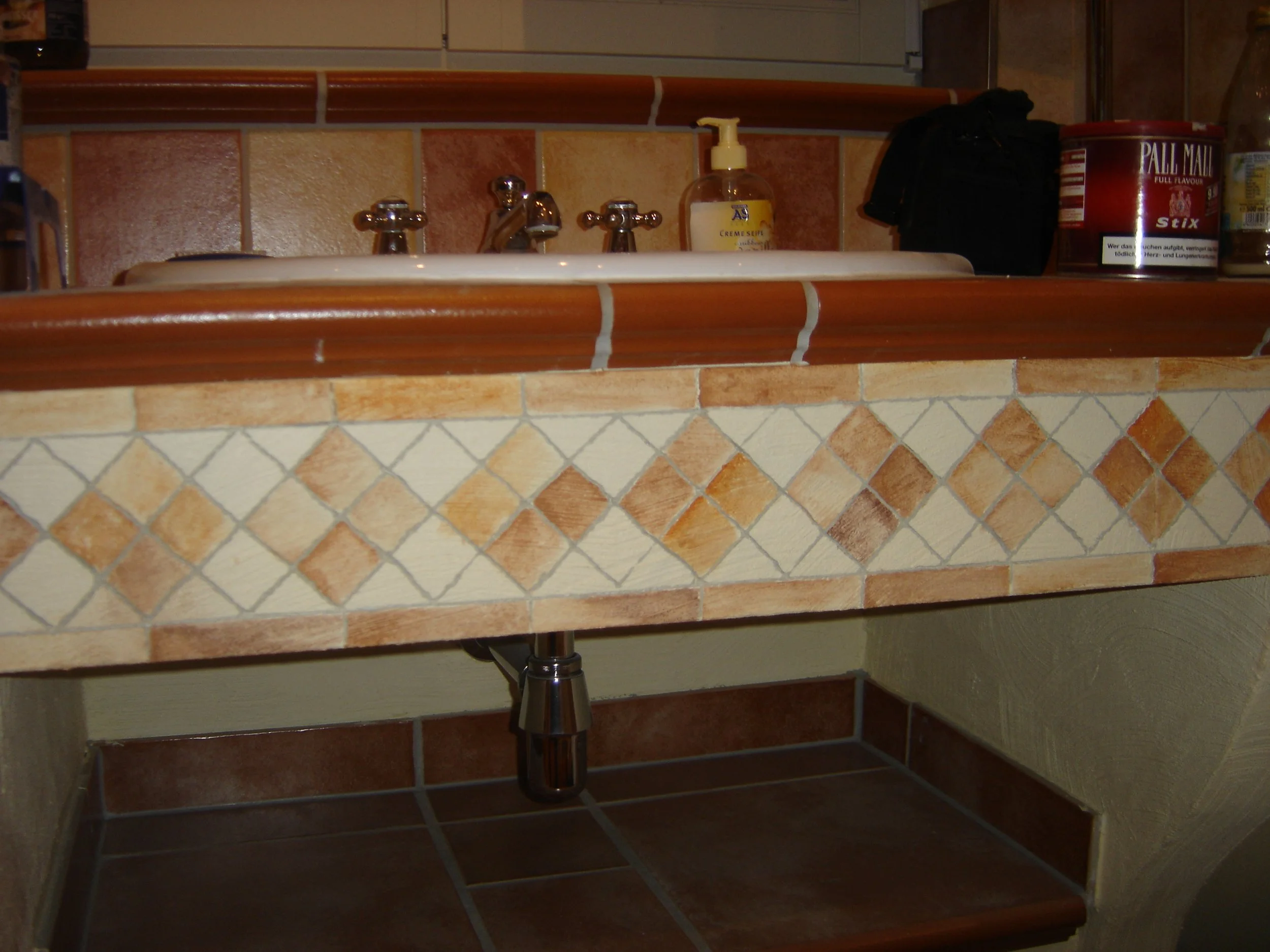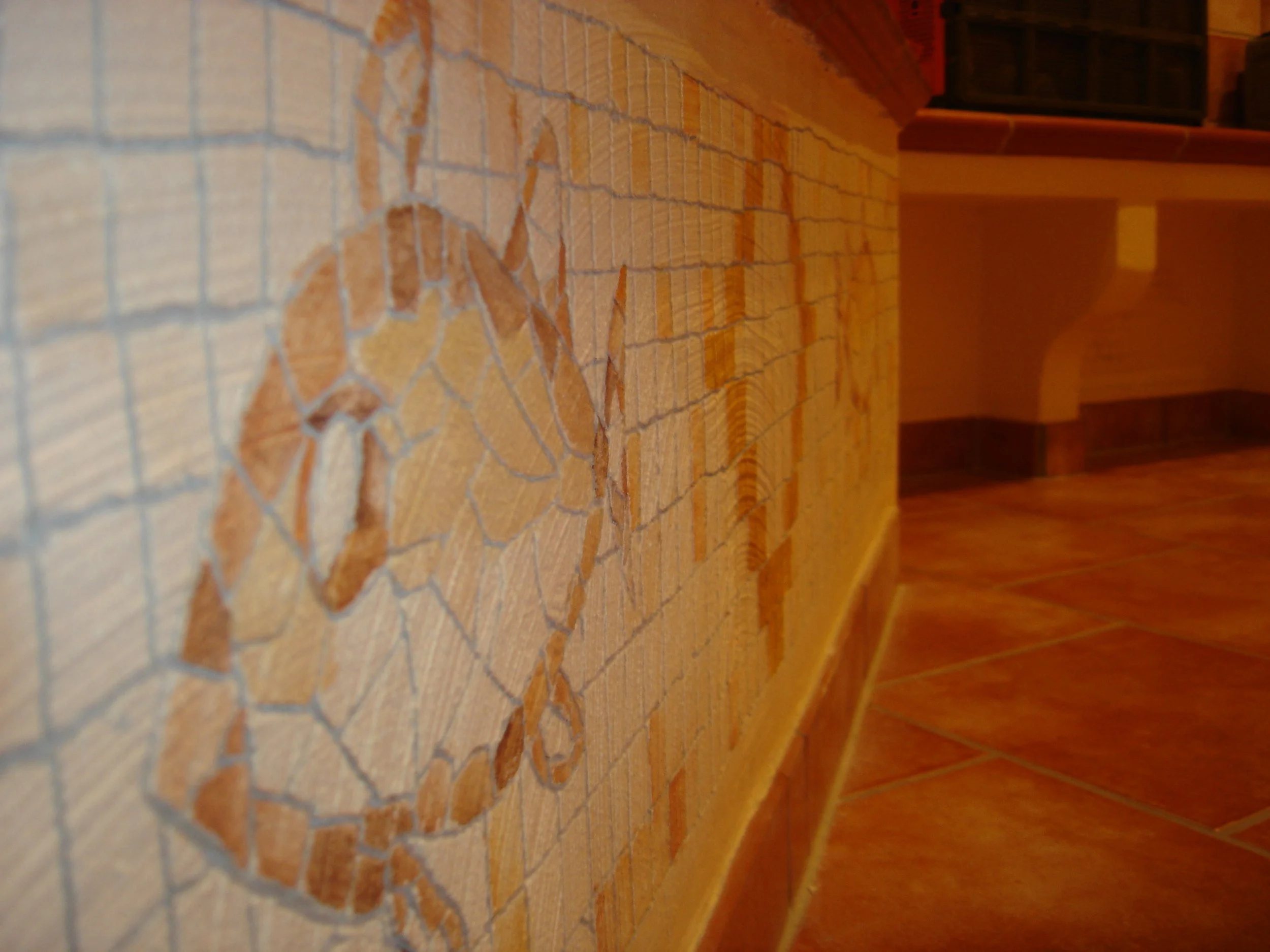 Villa (Halle), Bad, Mosaikimitation, gefräst, lasiert