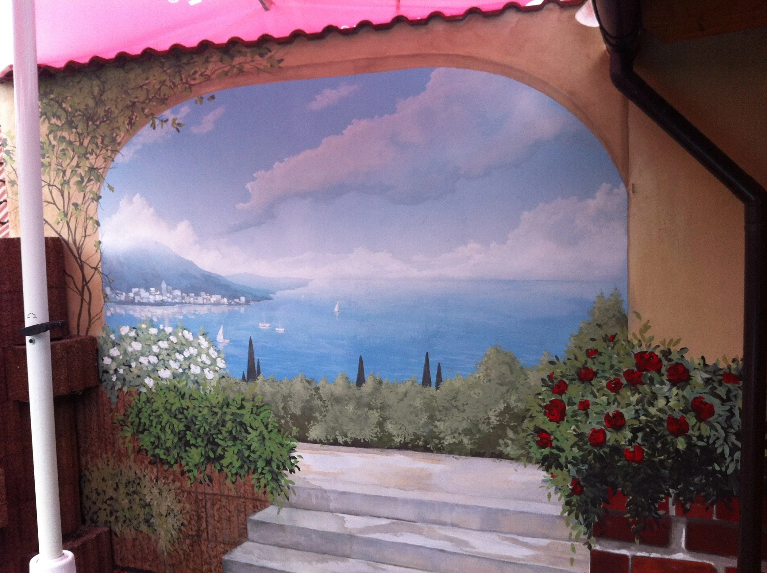 Villa (Lion, Frankreich), Pool, Wandmalerei