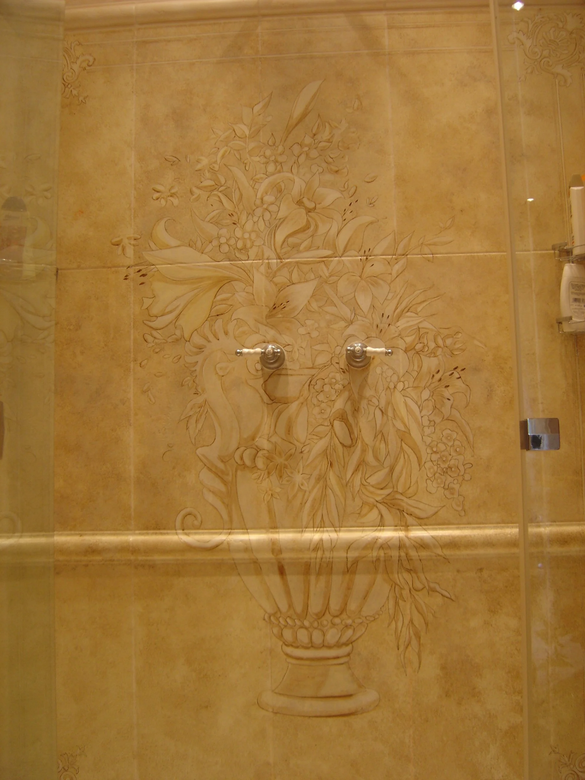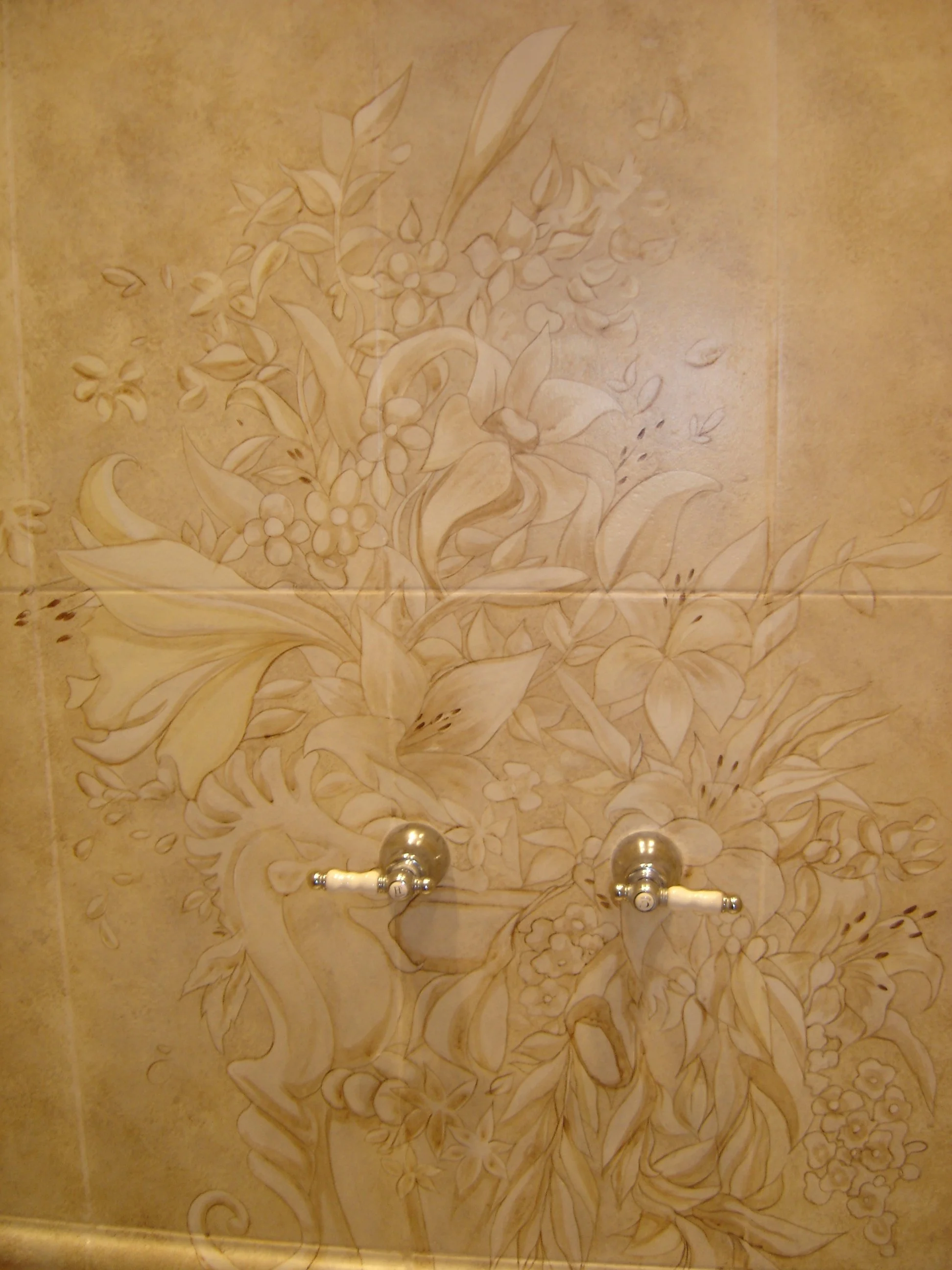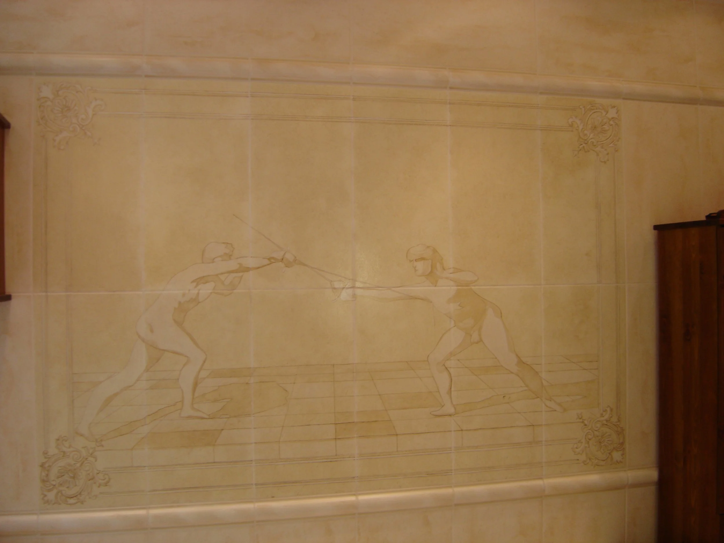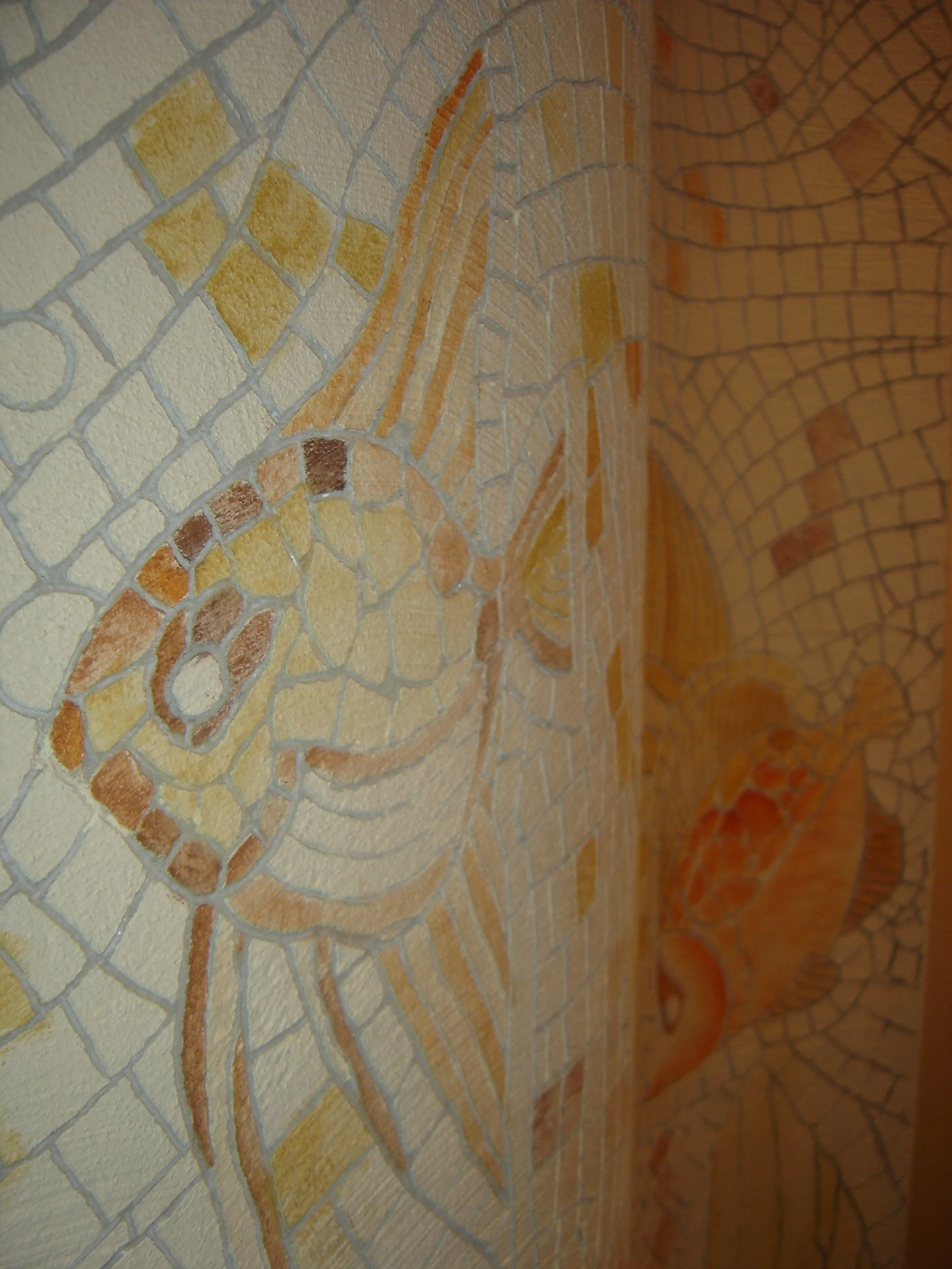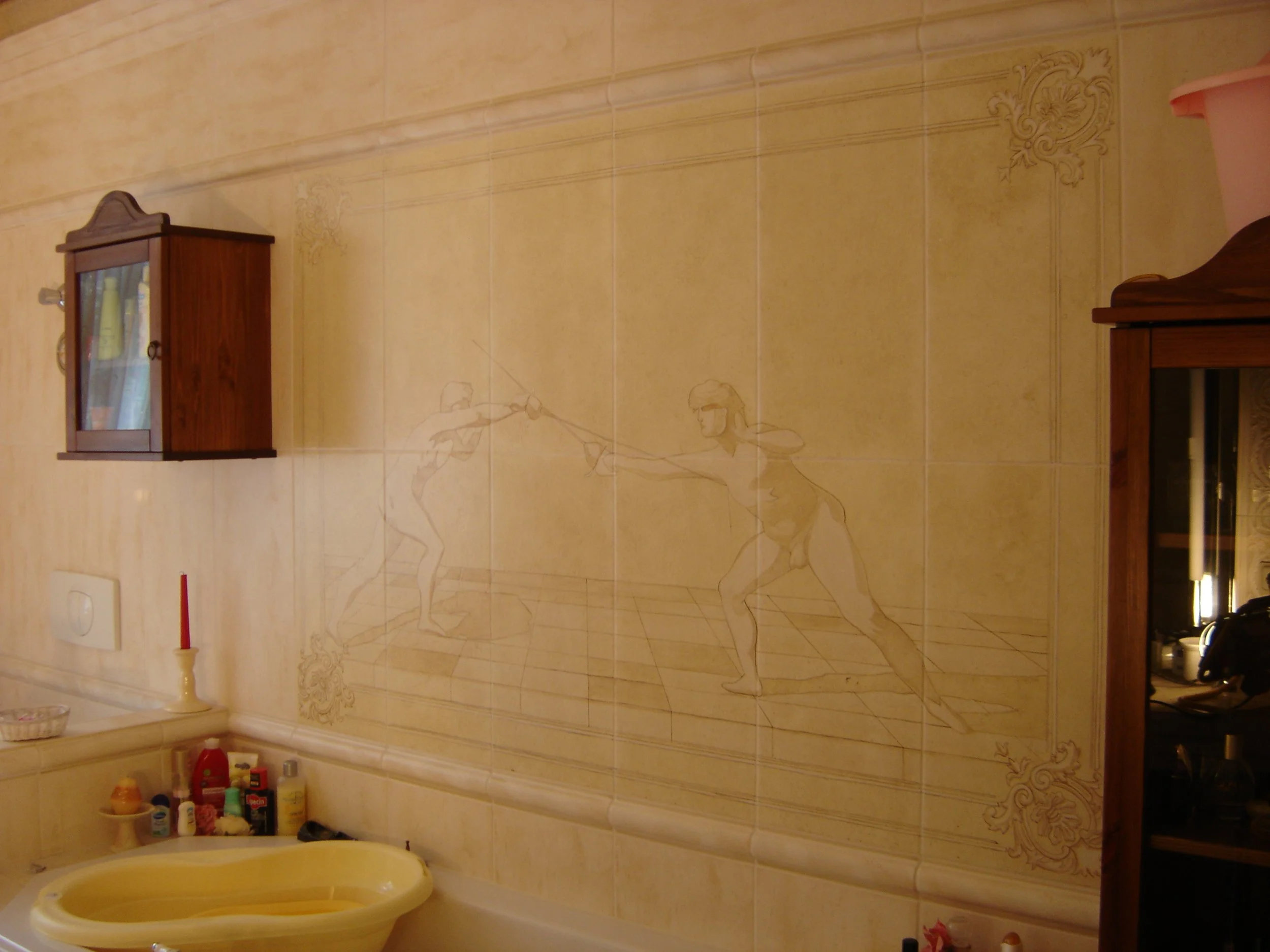 Villa (Berlin), Bad, Wandmalerei auf Marmor