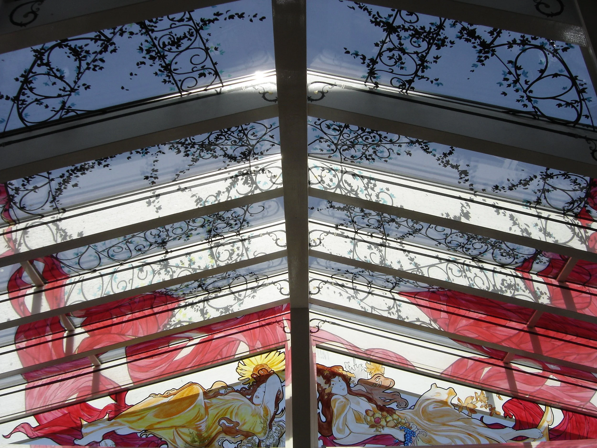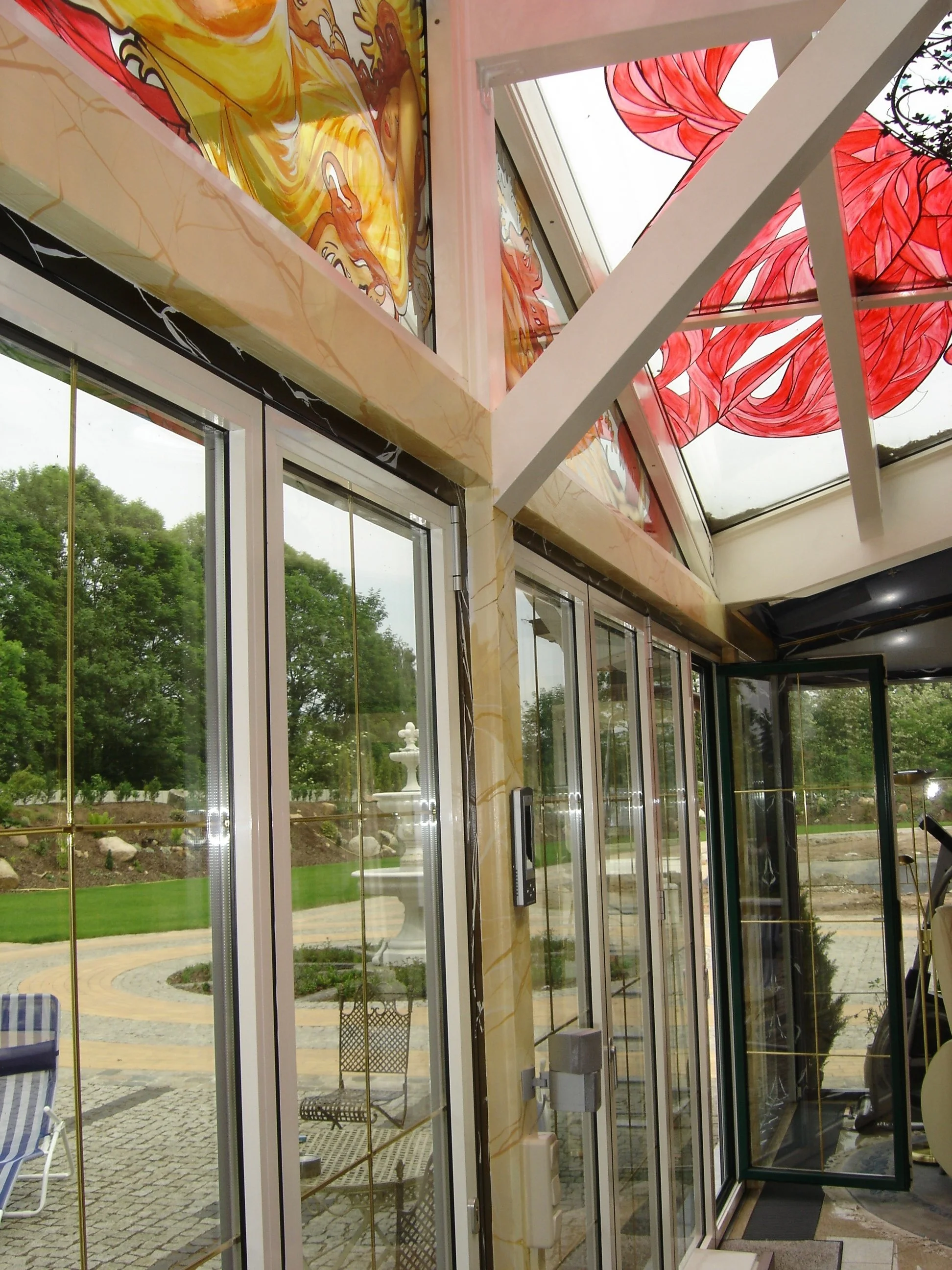 Villa (Marbella, Spanien), Vestibül, Deckenmalerei, Bleiglasimitation