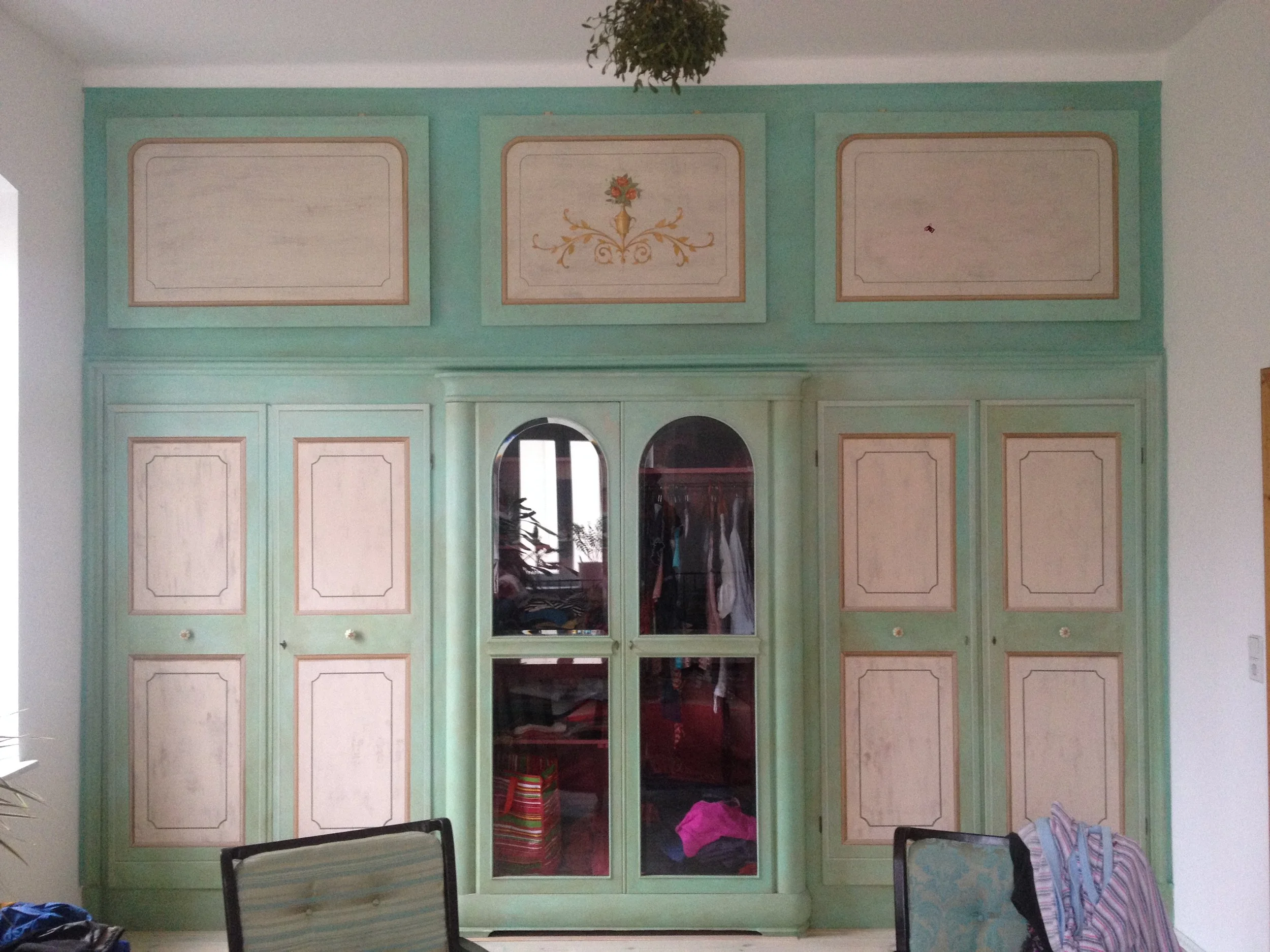 Wohnung (Halle), Schrank, bemalt, (Kassettierung und Leisten ebenfalls gemalt)