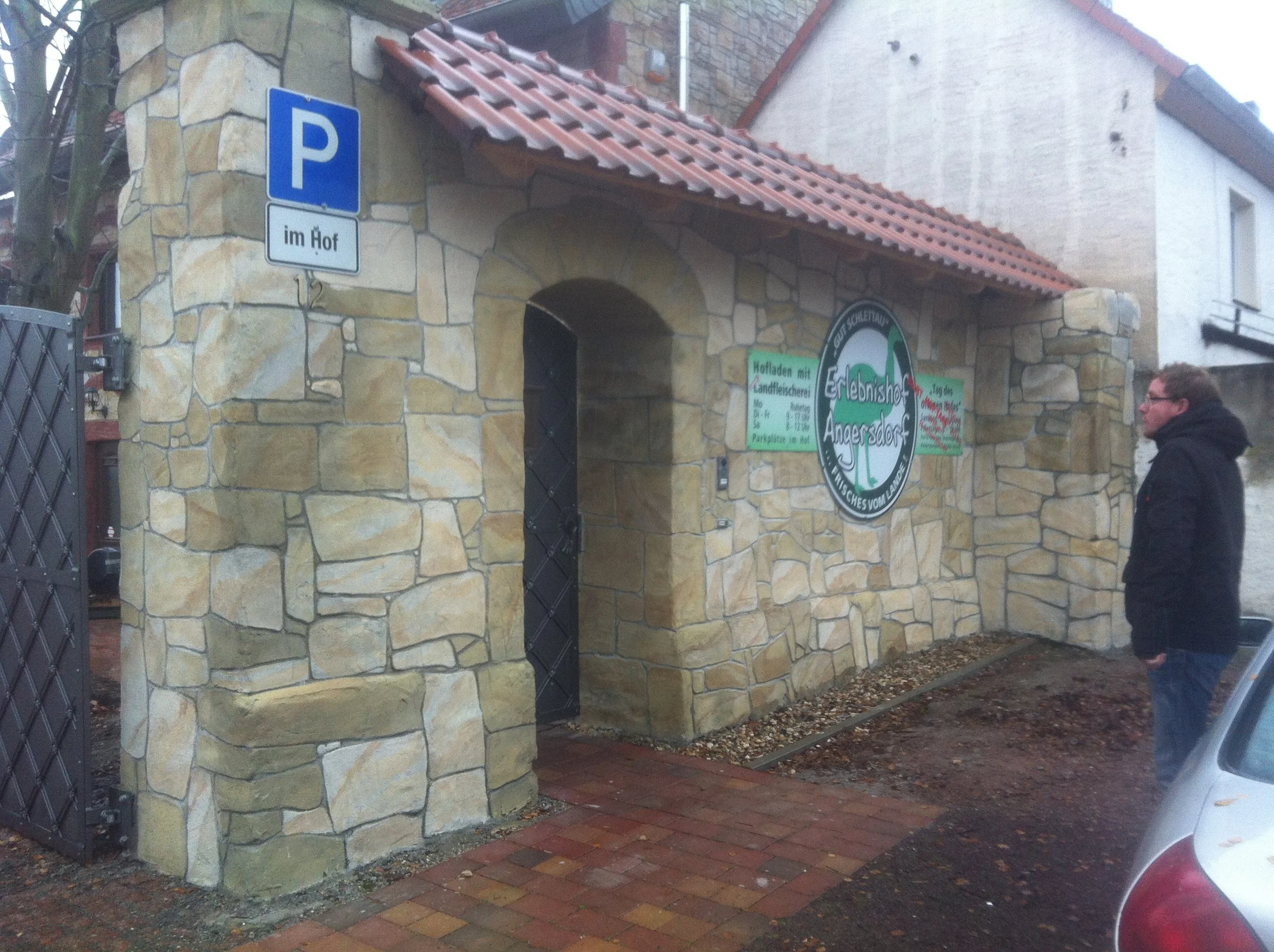 Fassade (Angersdorf) Steinimitation gespachtelt, lasiert
