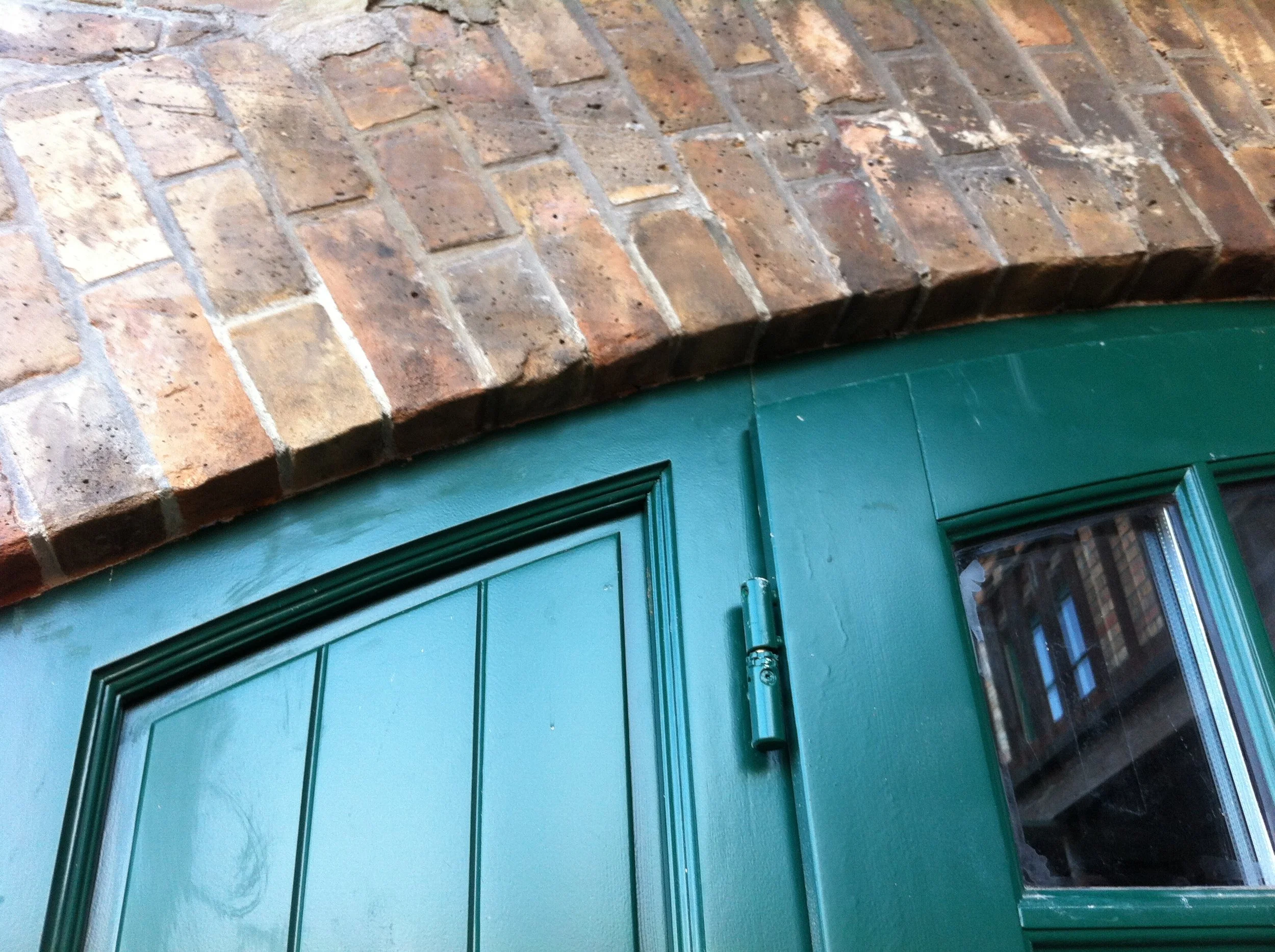 Fassade (Berlin), Rekonstruktion der durch den Türeinbau zerstörten Klinker (spachteln, einfärben, lasieren)