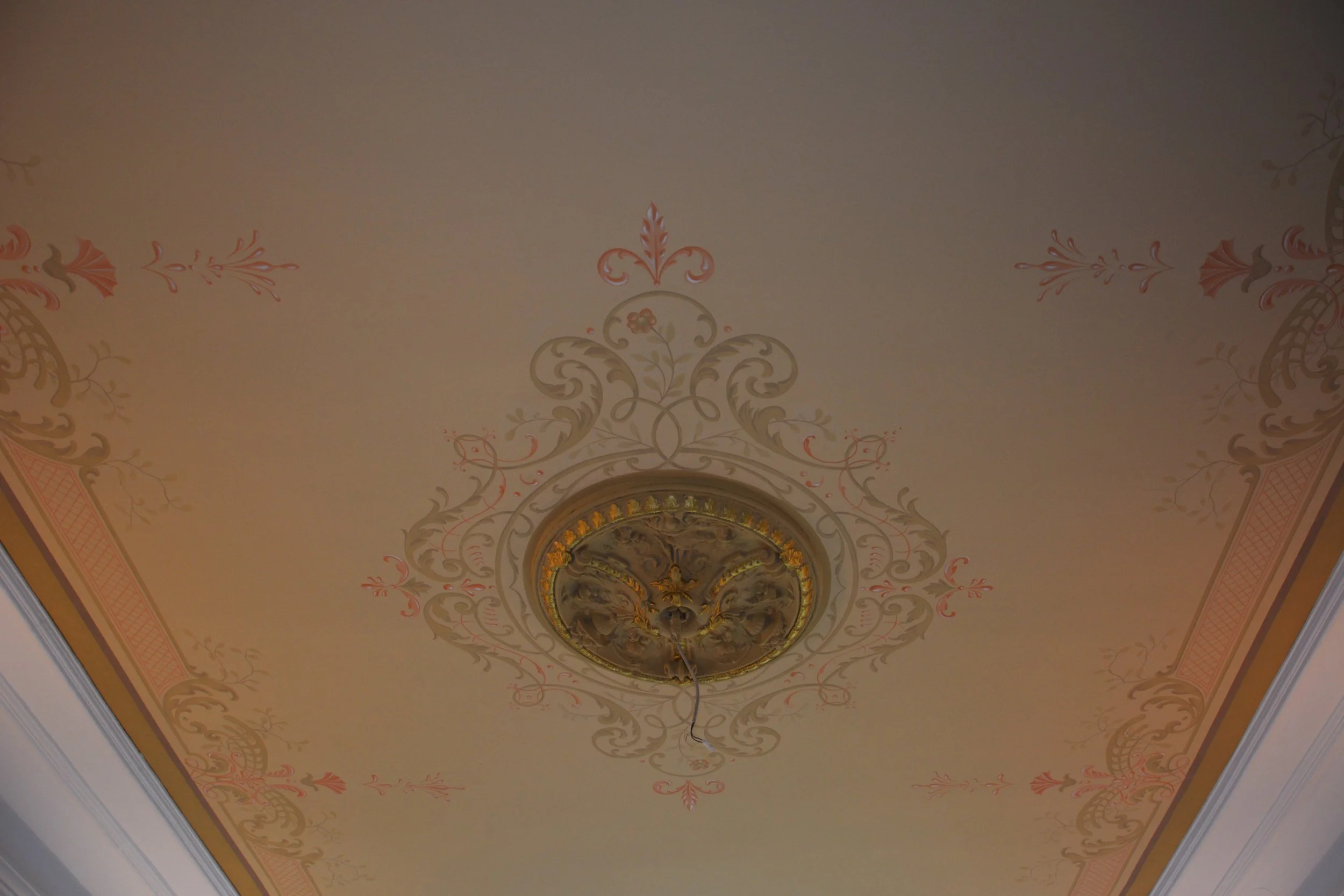 Villa (Köthen), Bauhistorisches Gutachten, Rekonstruktion Deckenmalerei, Stuck patiniert